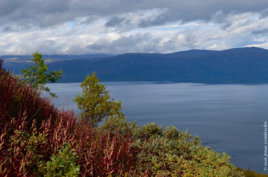 The colours of the north: red fireweed and yellow mountain birches, with lake Torneträsk on the background