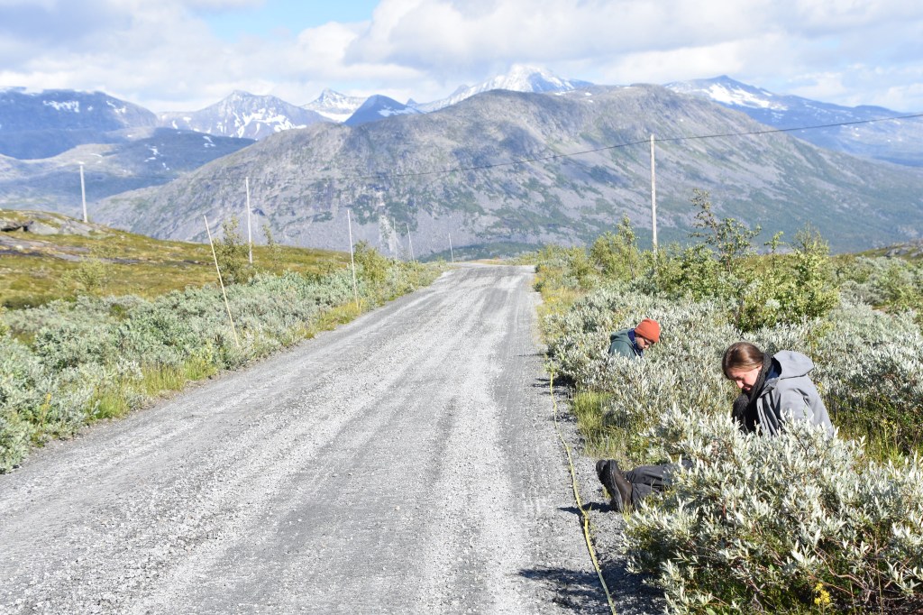 To test for that hypothesis we went back to our trusty roads in the beautiful northern Scandes. The great thing about these roads is that not only do we already know that they favor non-native species thanks to our previous surveys (see chapter 2 here), there is also a clear distinction between the type of mycorrhizas that naturally associate with the local plants (called ericoid and ecto-mycorrhizas) and the type that non-native plants like to associate with (arbuscular mycorrhizas or AM). This clear distinction in mycorrhizal types is really helpful as we can simply track the changes in AM and have an idea of how impacted our non-native plants are going to be.