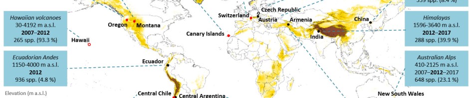 The protocol has been successfully used in 18 regions worldwide from 2007 to the present. So far, analyses of the data already generated salient results, both in regional studies and global assessments. For example, we found region-specific elevational patterns of native plant species richness, but a globally consistent elevational decline in non-native species richness. Non-native plants were also more abundant directly adjacent to road edges, suggesting that disturbed roadsides serve as a vector for invasions into mountains. From the upcoming analyses of time series – in some regions we now have three timesteps, over a 10 year period, and the 4th one will be collected this year – even more exciting results can be expected. Indeed, as the covered time frame gets longer, our assessment of species range changes will further improve.