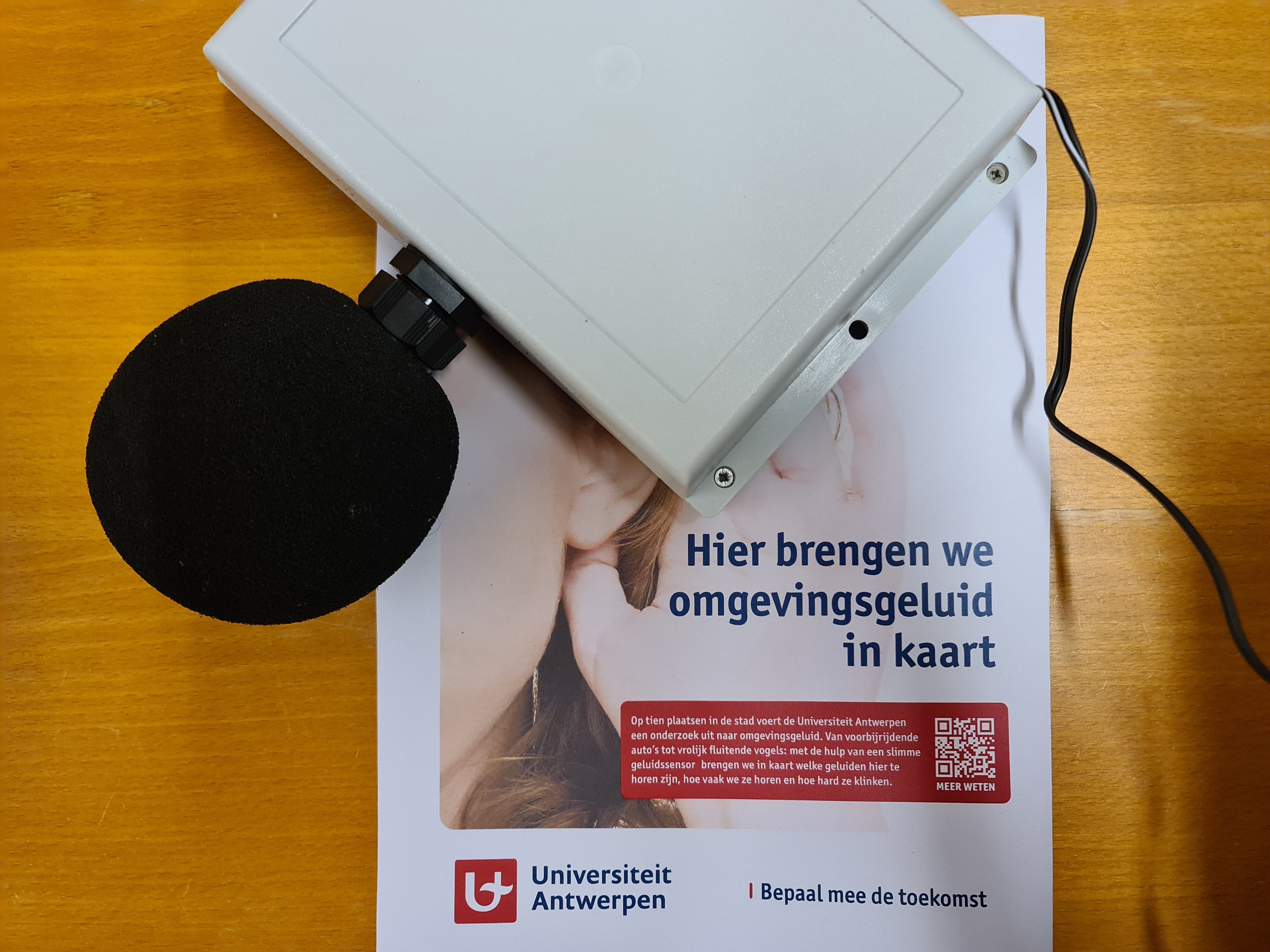 These boxes are smart sound sensors, designed to measure the variety of sounds in the urban context. They are the predecessors of a large citizen science project on sound and its impact on our lives; a collaboration between University of Antwerp, the Universitary Hospital (UZA) and media partner De Morgen, and I am proud and happy to be in charge of the scientific roll-out of this project.