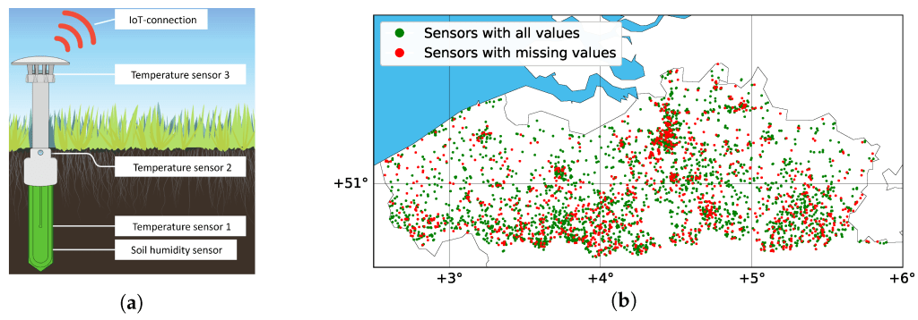 In this paper, we applied and evaluated 12 such gap-filling methods to complete the missing values in a dataset originating from large-scale environmental monitoring. For this, we used the unique dataset of 4400 IoT-connected microclimate sensors that were deployed across Flanders as part of ‘CurieuzeNeuzen in de Tuin’, our large-scale citizen science project on heat and drought.