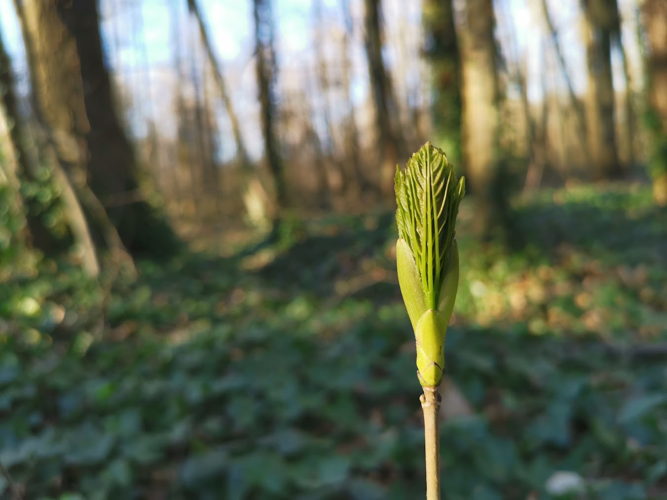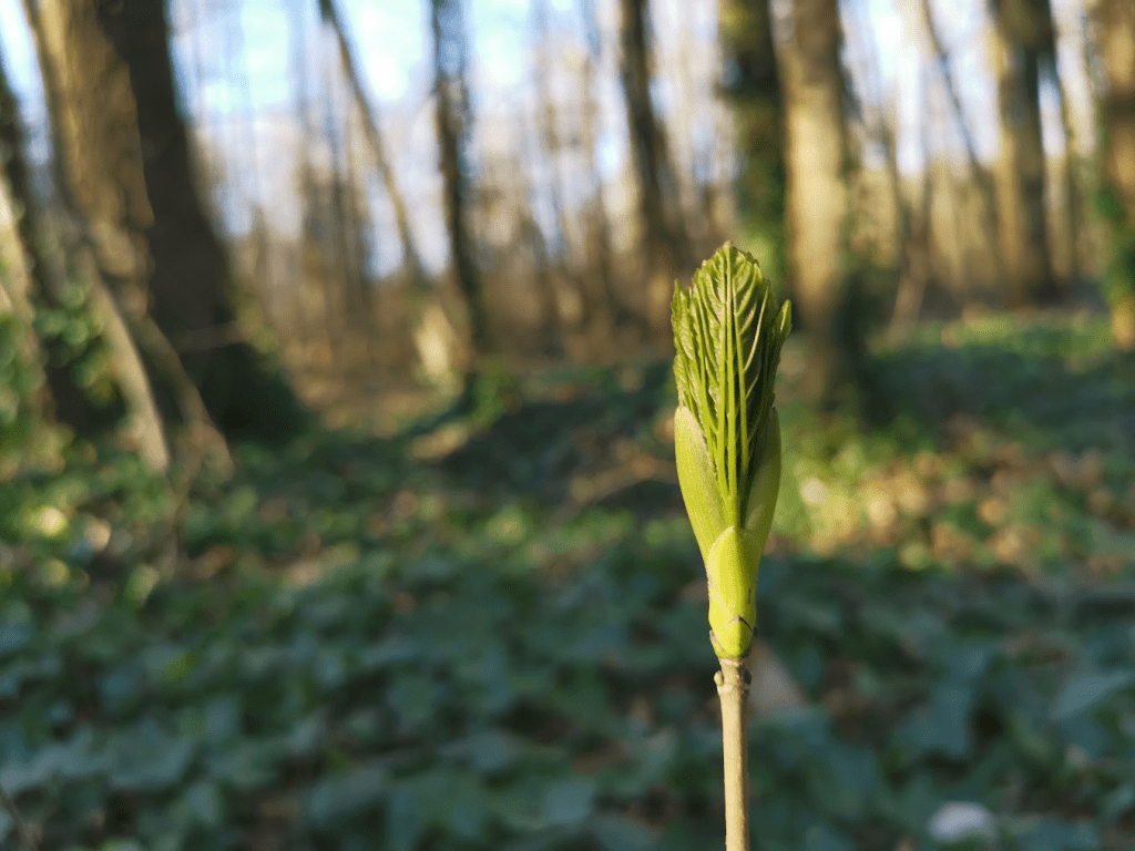 Budding seedling of Acer pseudoplatanus in a Belgian forest – one of the ‘winners’ of the study – strongly expanding its range.