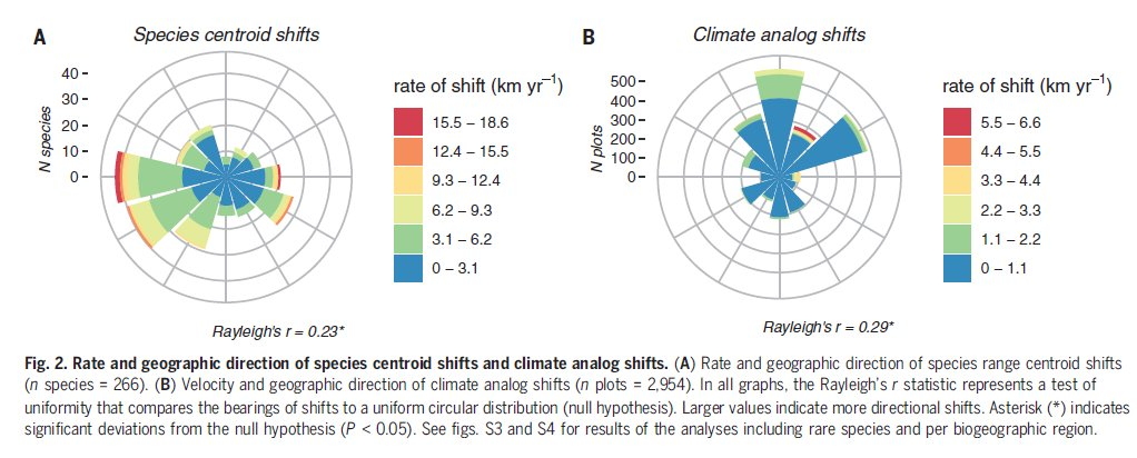 The power of this database lies in its ability to track long-term changes in species distributions across decades of global change. Moreover, by looking at both centroid shifts and colonization/extinction events, we were able to paint a comprehensive picture—not just of range edges, but of how entire species ranges are being reshaped. And the results, now published in Science, tell a clear story: northward movement is being eclipsed by these striking east-west shifts.