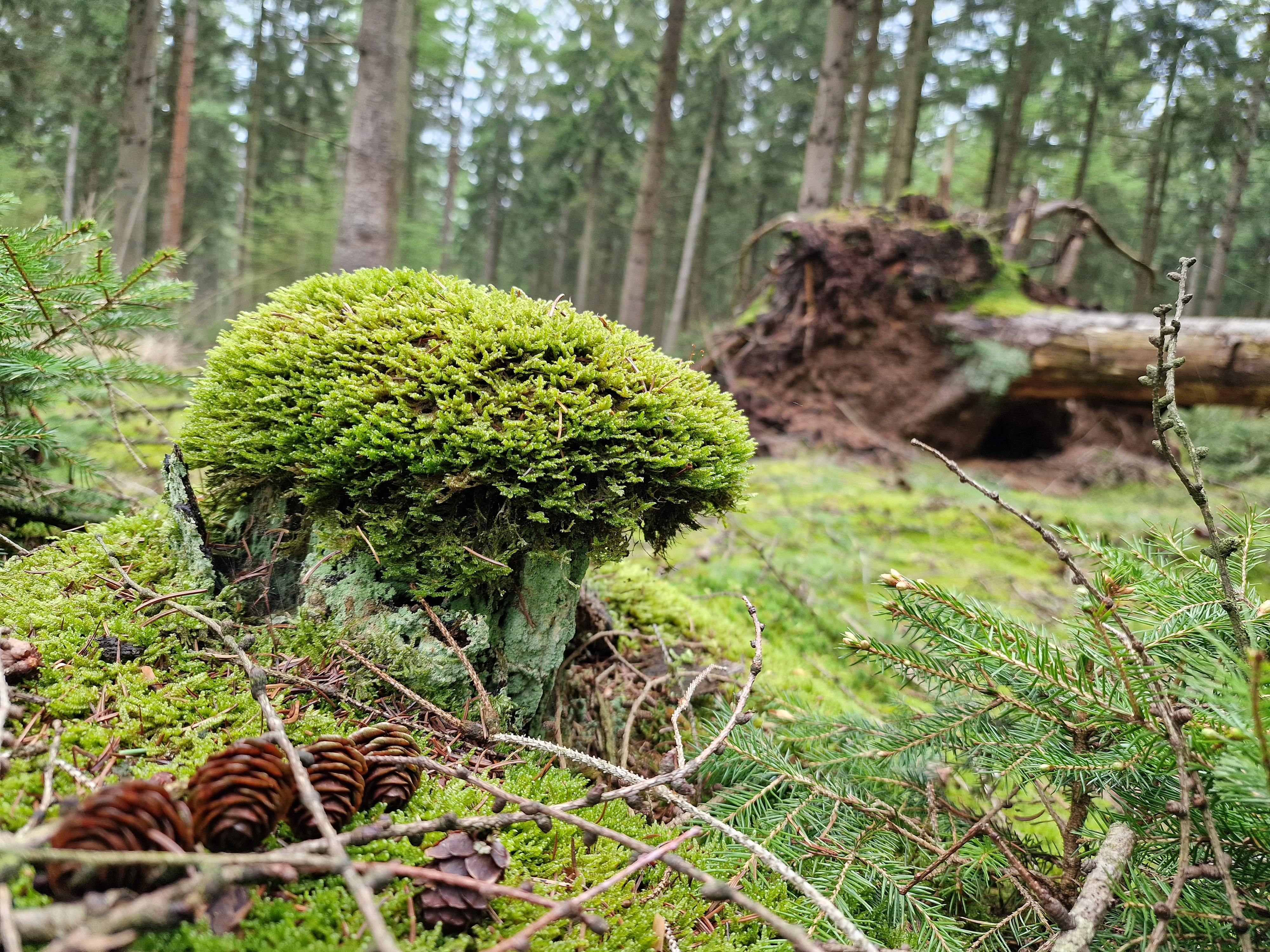 A raised bog is something truly special. Formed over thousands of years, it’s a living landscape built entirely from rainwater and sphagnum moss. Layer by layer, the mosses grow, die, and decay, creating a domed blanket of peat that rises above the surrounding land. These bogs are wet, acidic, and nutrient-poor, yet support a unique and fragile web of life. Carnivorous sundews, rare dragonflies, and strange fungi find their niche here. And underneath it all, the peat holds centuries of carbon, making these bogs some of the most effective natural carbon stores on Earth.