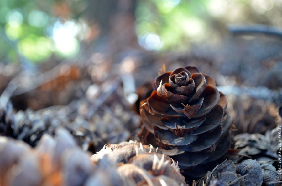 Pine cone in sea of pine cones