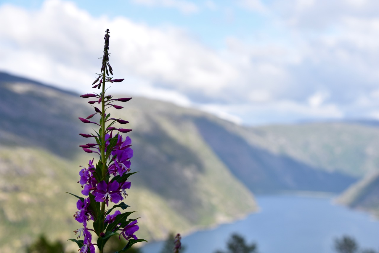Fireweed overlooking a fjord